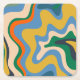 Retro Liquid Swirl Abstraktes Muster Blue Mustard Rechteckiger Pappuntersetzer
