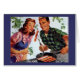 Retro Mann und Frau Grußkarte. Anpassbarer Text im Inneren.