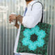 Retro Mandala Blume Blau und Grün Tasche