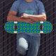 Retro Margeriten u. Sterne Artdeco in grün blau Skateboard