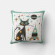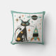 Retro MCM Black Cat Spaceship Planet Stars Kissen