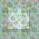 Durch Felder von Blume mit blassgrünem, weichem Blumenhintergrund mit gelben, rosa, roten, grünen und weißen Farbspritzen für eine süße Dekoration.