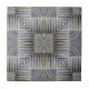 Vintages Illustrationsdesign mit elegantem Grau, Erdtönen und silberfarbenen Metallstreifen, Quadraten und Würfeln in einem sich wiederholenden Muster.