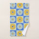 Lebhaftes Badetuch-Set mit einem Retro-Muster aus der Mitte des Jahrhunderts in Blau und Gelb.