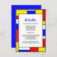 Eine lustige und funky Retro-Hochzeitseinladung, die so lustig wie Sie sind - ein nostalgischer Blick auf die Mitte der sechziger Jahre mit einem coolen kühnen Schriftart gepaart mit den Primärfarben Gelb, Blau und Rot in Schwarz in geometrischen Formen im Stil von Mondrian.