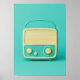 vintage radio, aqua decor, pop poster, colorful art, sound system, turquoise aesthetic, retro tech, home office, music lover, bold colors, cream, minimal design