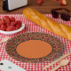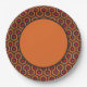 Dekorieren Sie Ihren Party-Tisch mit diesen Tellern aus Papier, die in diesem roten, orangefarbenen und braunen Retro-Muster der sechziger Jahre bedeckt sind. Dieses Design der 70er Jahre wird durch den berühmten, beängstigenden und gruseligen Overlook Hotel Teppich inspiriert.