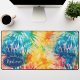 Fügen Sie Ihrem Arbeitsbereich mit unserer Retro Modern Abstrakt Rainbow Watercolor Gefärbte Krawatte Desk Mat einen Farbenstoß und Kreativität hinzu. Diese Matte verkörpert die Freude und Spontaneität des Retro-Krawatte-Farbstoff-Trends perfekt und fügt gleichzeitig eine moderne, abstrakte Drehung hinzu. Die wunderschönen Regenbogenfarben sind in einem beruhigenden Aquarelleffekt präsentiert, der einen nostalgischen Retro-Charme mit der Eleganz des modernen Designs verbindet. Personalisieren Sie dieses benutzerdefinierte Design mit Ihrem eigenen Namen.