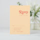 Ce rétro moderne | carte RSVP crème orange est parfaite pour votre simple mariage d'été boho tropical vintage et coloré. Sa police bohème unique du milieu du siècle donne à ce design une ambiance minimaliste super hippie classique. Si vous cherchez un design qui présente des couleurs vives et audacieuses pour votre mariage de plage créatif des années 70, ce produit, et sa collection de mariages coordonnés, sont précisément ce que vous cherchez. N'hésitez pas à modifier la couleur pour ajouter vos propres illustrations, graphiques ou photos. Si vous avez des questions sur la conception de ce produit, n'hésitez pas à nous contacter !