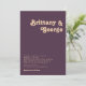 Ce rétro moderne | faire-part de mariage violet foncé est parfait pour votre mariage d'été boho tropical vintage et coloré. Sa police bohème unique du milieu du siècle donne à ce design une ambiance minimaliste super hippie classique. Si vous cherchez un design qui présente des couleurs vives et audacieuses pour votre mariage de plage créatif des années 70, ce produit, et sa collection de mariages coordonnés, sont précisément ce que vous cherchez. N'hésitez pas à modifier la couleur pour ajouter vos propres illustrations, graphiques ou photos. Si vous avez des questions sur la conception de ce produit, n'hésitez pas à nous contacter !