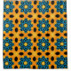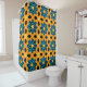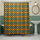 Ein retro-moderner farbenfroher Duschvorhang-Stil, entworfen in den leuchtenden Farben Blau, Schwarz, Gelb, Orange und Braun