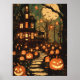 Retro Moonlit Haunted House Pathway Poster