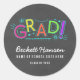 Personalisierte Abschluss Aufkleber in einem lustigen 90er Jahre inspiriert Doodle-Design mit GRAD! geschrieben in Neonfarben.