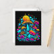 Farbenfrohe Neonkunst mit blauen und rosa Pilzen und Blume und schwarzem Hintergrund.