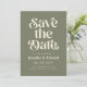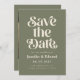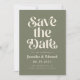 Retro und elegante Save the Date Karte mit boho Schriftart, der "Save the Date" in olivgrüner Farbe sagt. Sie können ein Foto auf der Rückseite hinzufügen.