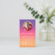 Eine elegante und stilvolle Retro-Visitenkarte für Fotografen, die perfekt für einen unvergesslichen Eindruck ist. Diese Karte zeichnet sich durch ein gewagtes und modernes Design aus, mit einem farbenfrohen Hintergrund, der von einem lebhaften lila zum warmen orangefarbenen Sonnenuntergang übergeht. Das elegante, fließende Drehbuch für "Fotograf" fügt eine persönliche Touch hinzu, während die Kontaktdetails und die Handles der sozialen Medien in sauberen, modernen Schriftart klar dargestellt sind. Eine runde Fotovorlage oben. Auf der Rückseite können Sie Ihre Foto Arbeit hinzufügen, indem Sie eine berufliche Touch. Ein QR-Code wird hervorgehoben angezeigt, um den Zugriff auf Terminplanung, Portfolio und Preisliste zu erleichtern. Diese Visitenkarte ist ideal für Hochzeitsfotografen und Modefotografen, die einen bleibenden Eindruck verlassen suchen.