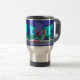 This Retro Open House Party Travel Mug will put you in the partying mood. The cartoon design feature the exterior of a mid century modern house. Through the floor to ceiling turquoise gwalls, we can see the navy blue silhouettes of festive party goers. There is hat Chatting in front of a window. Wir sind die opposite side of the room, we can see a dancing man and the long-winded man everyone is trying to avoid. The Exterior of the House Feature hat die Cheery Red Door and an oversize purple brick chimney. Grey walkway is cutting a swath to the front door, through the teal grass. Die nighttime scene has a dark blue sky with a yellow, crescent moon. An attraktive Paar is doing the cha-cha on the way to their car. Blond woman is wearing a bright red dress. Her handsome escort is wearing a black suit and a red tie. His hands are wrapped around the woman's waist. Wir sind in der Straße, in front of the house, we can see three, brightly colored classic cars. Order today and party like it's 1959!