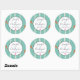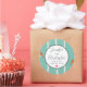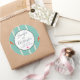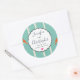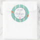 Eine Hochzeit danke Ihnen Aufkleber mit einer Illustration von Birken mit Orangenvögeln sitzen auf ihren Zweigen. Retro grüner Hintergrund. Oben platziert ist ein Kreis, in dem Sie Ihre Informationen eintragen können.