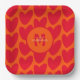 Retro Orange Groovy Red Hearts Name über Monogramm Pappteller
