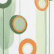 Dieses Kunstwerk zeichnet sich durch ein elegantes und minimalistisches Muster aus runden und länglichen Formen aus, die in einer vertikalen Ausrichtung angeordnet sind, die an Retro-futuristische Designs erinnert. Die Komposition verwendet eine frische Farbpalette aus grün, orange und weich Creme und schafft ein harmonisches und ausgewogenes Aussehen. Die Kreise, einige solide und einige umrissen, scheinen entlang dünner vertikaler Linien zu schweben, was die Bildsprache von Planeten und Umlaufbahnen hervorruft. Die Kombination aus klaren Linien und sanften Formen verleiht dem Werk ein modernes, aber nostalgisches Ambiente, das moderne Ästhetik mit einer Touch zeitgenössischen Stils verbindet.