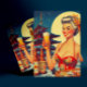 Retro Oriental Beer Girl Postkarte