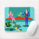 Dieses Retro Paar mit Hund Mousepad sieht wie eine Szene aus einer romantischen Komödie heraus aus. Die Art der Sechzigerjahre, unbedeutende KunstAusrüstungsbeschreibungen ein attraktives Paar, das zu Hause einen romantischen Abend genießt. Der hoch entwickelte Raum kennzeichnet vorstehend ein Aqua und aquamarinen einen Ziegelsteinkamin mit einer hellen roten Leiste. Ein schönes, die Redheadfrau, die ein helles, Rosakleid trägt, wird auf der Leiste gehockt. Sie genießt einen Martini mit einer sich hin- und herbewegenden Olive, einem Brüllenfeuer, guter Musik und der Firma ein hohes, eine Dunkelheit und ein gutaussehender Mann. Der Mann trägt einen blauen Anzug und eine rote Krawatte. Sein Martini-Glas wird angehoben, um seinen reizend Begleiter zu rösten. In seiner anderen Hand hält er ein VinylRekordalbum. An seinen Füßen sehen wir eine entzückendste Dackel, einen roten Kragen zu tragen. Der playful Dackelhund geht in Richtung eines grünen Rekordspielers mit Orange, Spindelbeine. Auf dem Boden gibt es eine bunte Gruppe Spaß, eklektisch, VinylPlatten. Beifall! Ist hier zum perfekten Abend zu Hause.