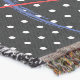 Retro 1980er Primärfarbenstriche zeichnen Spritzer-Muster auf einem geometrisch schwarz-weiß gepunkteten Hintergrund.