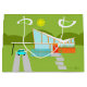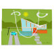 Dieses Retro Palm Springs-Haus mit Auto-Geschenk-Tasche ist der Traum eines der Mitte des Jahrhunderts modernen Liebhabers. Die unbedeutenden KunstAusrüstungsbeschreibungen ein glattes orange und Glashaus mit einem drastisch schrägen Prüfzeichenformdach. Die rote Tür gleicht den orange Steinpflanzer aus, der mit dem Grün und dem dekorativen Türkis cinderblock Privatlebenschirm gefüllt wird. Geschwankte Betonblöcke bilden den perfekten Gehweg durch den üppigen, grünen Rasen. Ein weißer Autoparkplatz bietet Schutz einem Türkis und weißen klassischen einem Fünfzigerjahre Auto mit Flossen an. Das Auto ist für das Fahren um das Grün, gerundete Berge im Abstand perfekt. Das kitschy Sechzigerjahre Arthaus sieht wie eine schattige Oase vom heißen, Palm Springssonne aus.