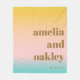 Mit diesem Retro Summer Beach Vibes Fleece Blanket erleben Sie das Wesen eines sonnenverwöhnten Sommers und genießen eine sanfte Pastellneigung in warmen Tönen. Diese individuell gestaltete Decke verleiht Ihrer Hochzeitsdekoration eine einzigartige Touch oder ist ein unvergesslicher Genuss. Sie zeigt Ihre Namen und Ihr Hochzeitsdatum in fett inspiriert Typografie. Die sanfte Farbenmischung erinnert an das nostalgische Gefühl eines ruhigen Sonnenuntergangs am Strand und macht ihn zu einem idealen Geschenk oder Ergänzung zu Ihrem besonderen Tag. Gemütlich, stilvoll und personalisiert charmant, ist diese Decke eine wunderschöne Erinnerung Ihrer Liebe und Feier.