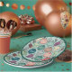 Sie und Ihr Gast werden diese hochwertigen Teller aus Papier, die ein originelles Muster der digitalen Künstlerin Leslie Sigal Javorek tragen, mit den in den 1940er und 1950er Jahren beliebten Glashütten der Alten Welt mit handgemalten Motiven und mit einer Palette der neuesten Trendfarben für die Feriensaison, wie Opal Blue, Rose Quartett z, Tourmaline & Lavender Fog. Ideal für Weihnachten und Neujahr Partys.