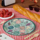 Retro Pastel Weihnachtsschmuck auf Opal Blue Pappteller