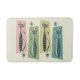 Meine originelle Vektorgrafik von Patchwork-Tischen und Sternexplosionen im Retrostil, in Blau-Grau und Rosa auf Rosa, Grün, Gelb und Blau, mit einem cremefarbenen Hintergrund.