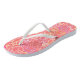 Groovy Friedensstipps in Rosa, lila und orange bedecken diese Flip Flops mit lachsfarbenem Hintergrund.