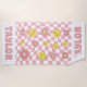 Multi Custom Color and Font Style - serviette de plage personnalisée avec nom, joyeux visage sourire et rétro à damiers arrière - plan et fleurs. Customisez toutes les couleurs comme vous le souhaitez ! Idée cool pour le cadeau Bridesmaid !