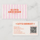 Retro Pink Boho Groovy Pinstripes Girly QR Code Visitenkarte