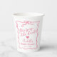 Feiern Sie die zukünftige Braut mit diesen Retro-, handgezeichneten rosa Bogen "Sie bindet den Knoten" thematischen Papierbechern. Dieser Pink-Bogen-Brautparty-Papierbecher kann mit Ihren eigenen Details angepasst werden und ist in mehreren Farben erhältlich.