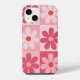 Retro Pink Daisy Checkerboard-Muster iPhone 14 Hülle