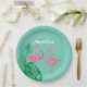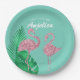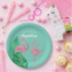 Retro Pink Glitzer Flamingo und Palm Blätter Pappteller