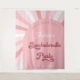 Set den Ton für eine lustige Feier mit dieser Retro-rosa Bachelorette-Kulisse mit 70er inspiriert Sonnenstrahlen, mutiger Vintager Typografie und einer fröhlichen Farbpalette. Ideal für eine Foto-Standwand, einen Party-Eingang oder eine Brautkommando!