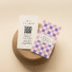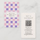 Retro Pink Lila Checked Trendy Boho QR Code Visitenkarte