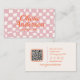 Retro Pink Orange Checkered Groovy Girly QR Code Visitenkarte