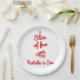 Wie Sie sehen, diese einzigartige und elegante italienische Pizza ersten Geburtstag Papier Platte hat eine gut konzipierte Vorlage. Mit roter Hand gezapftes Pizzalschnitt mit knackigen handgeschriebenen Stück Spaß . Alle auf weißem Hintergrund. Sie können sich einfach anpassen, indem Sie die Taste "Personalisieren" drücken.