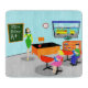 Cette rétro planche à découper personnalisable de professeur obtient A+! Ce style des années 1960, art minimaliste, dessin de bande dessinée comporte une salle de classe vibrante et élémentaire avec tout requis pour mouler les esprits de l'avenir. C'est la sorte de pièce où des idées sont évaluées et la créativité est félicitée. À l'avant de la salle de classe moderne de la moitié du siècle, nous voyons le professeur le plus populaire de l'école se tenir devant un tableau. Le professeur porte une robe vert clair et jaune, avec les chaussures jaunes. Quoique l'horloge sur le mur bleu nous indique il est presque temps pour que la cloche finale sonne, elle regarde toujours aussi frais comme marguerite. Ses cheveux noirs sont maintenus avec un bandeau jaune et son mod, les verres rouges l'aident à voir pour raccourcir n'importe quel préjudice sur la rangée arrière. Elle repose une main sur son bureau orange et noir. Le bureau propre est un hommage à ses qualifications organisationnelles fines. La seule chose sur le bureau est une pomme brillante et rouge, qui lui a été assurément donnée par un étudiant plein d'adoration. Parler des étudiants… Nous pouvons voir deux ou trois ceux, aussi bien. De notre position avantageuse, nous pouvons voir deux étudiants désireux s'asseoir derrière leur rouge, bureaux d'école. Il y a une fille blonde avec une queue de cheval pleine d'entrain portant une robe rose lumineuse. À côté de elle, il y a un jeune homme d'une chevelure sombre utilisant une chemise verte et des blues-jean. Chaque enfant tient un livre d'école bleu lumineux. Ils sont si désireux d'apprendre qu'ils n'ont pas même noté qu'il est presque temps pour qu'ils montent à bord de l'autobus scolaire jaune que nous voyons les attendre par les abat-jour ouverts sur la fenêtre de salle de classe. Sous la fenêtre, il y a une étagère orange tenant des livres colorés et un globe du monde. Ne vous inquiétez pas, des enfants. Demain, vous serez de retour dans vos endroits avec les visages lumineux et brillants. Le nom sur le tableau est personnalisable.