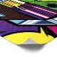 Hochwertige Grafik einer Retro Jukebox im Pop Art Stil. Das Design zeichnet sich durch dicke, schwarze Konturen und kühne, lebendige, kollidierende Farben aus.