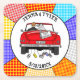 Niedliche Cartoon-Grafik eines Vintagen Retroautos und Braut und Bräutigam in konvertierbaren wir verheiratete Entwicklung nach Party Papier Teller got.