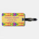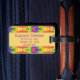 Dieses lustige Gepäckanhänger verfügt über gefärbte Krawatte-Wirbel durch eine lila Rahmen getrennt, wo Sie Ihren Namen setzen können. Auf der Rückseite legen Sie Ihren vollständigen Namen, Ihre Adresse und Ihre Telefonnummer auf einen lila Hintergrund mit einem gelben Schriftart. Die Ränder sind gefärbt.