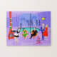 Ce rétro puzzle tropical de fête de Noël est assez de fête pour éclairer n'importe qui des perspectives de vacances ! Les caractéristiques de conception de bande dessinée le type de fête de vacances d'une manière extravagante sophistiquée qui normalement est seulement vue dans des films de Noël des années 1960. Il y a un salon moderne de la moitié du siècle rempli de fêtards appréciant le décor élégant et pourpre. Une belle femme dans l'uniforme d'une domestique française porte un plateau des martini. Elle se tient près d'un rouge, cheminée de cône avec un feu d'hurlement. Trois bas verts sont accrochés par la cheminée de mod avec soin. Au centre de la salle, un couple attrayant lounging dans les chaises oranges d'oeufs. La femme porte une robe de fête et verte. L'homme porte un costume noir avec une cravate rouge. Ils sont chaque participation par martini. Un autre couple devient confortable sous balancer, jaune, lustre de Spoutnik. Le monsieur d'une chevelure distingué et gris porte un costume bleu, une chemise bleu-clair et une cravatte rouge. Il également utilise un casquette de Père Noël et tient un martini dans chaque main, prouvant au monde que ses jours partying sont loin de plus de. Son compagnon est une blonde bien faite dans une robe rouge renversante. M. Distinguished a eu un meilleur regard parce qu'elle tient un brin de gui dans sa main. À l'avant de la salle, il y a un arbre de Noël kitschy et rose, accomplit des ornements turquoises et une étoile jaune. Derrière cette scène, nous pouvons voir le plancher aux murs de verre de plafond. La scène extérieure comporte un rond, piscine de turquoise. Nous pouvons voir la silhouette pourpre d'une femme plongeant ses jambes dans l'eau. Entre les murs pourpres et en pierre, il y a des silhouettes des palmiers décorés des ornements et des lumières de Noël. Les silhouettes de la danse et des fêtards parlants sont également évidentes. S'il y a une chose ceci s'avère, il est que, alors que les gens qui vivent dans les maisons en verre ne devraient pas jeter les pierres, ils devraient certainement jeter des parties !
