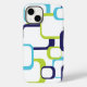 Retro Quadrate Geometrisches Muster Blau Grün Weiß Case-Mate iPhone 14 Hülle