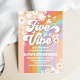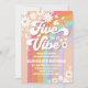 Celebrate your childs special day with this retro rainbow birthday invitation featuring playful pastel colors, peace signs, daisies, butterflies, and smiley faces. Perfect for a groovy 5th birthday party, this hippie-inspired design brings peace, love, and fun to your celebration. Customize with party details to create a unique keepsake guests will adore. Ideal for kids birthdays, retro-themed parties, and colorful celebrations.