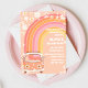 Celebrate in groovy style with this retro hippie rainbow birthday invitation featuring peace signs, daisies, and a vintage flower-power van. Perfect for kids parties, this boho-inspired design blends cheerful pastel tones with playful retro vibes. Customize easily with your event details to create a unique, eye-catching invite that guests will love. Ideal for first birthdays, retro-themed celebrations, or any fun party where peace, love, and joy shine.
